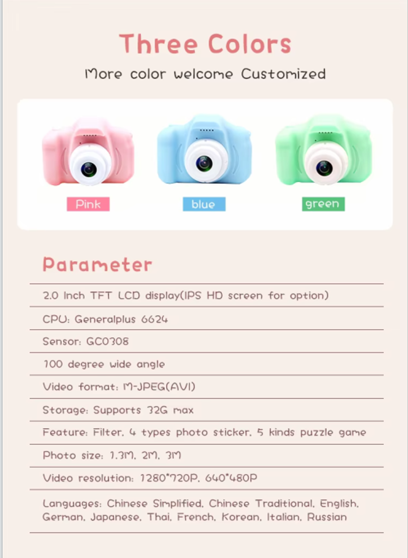 New Products Custom Color 720P 1080P Kid Selfie Children Camera with Dual-lens